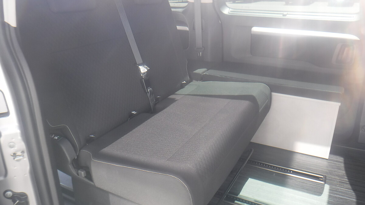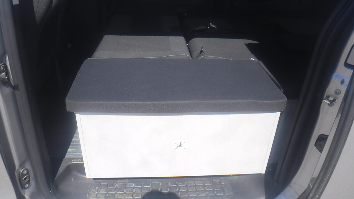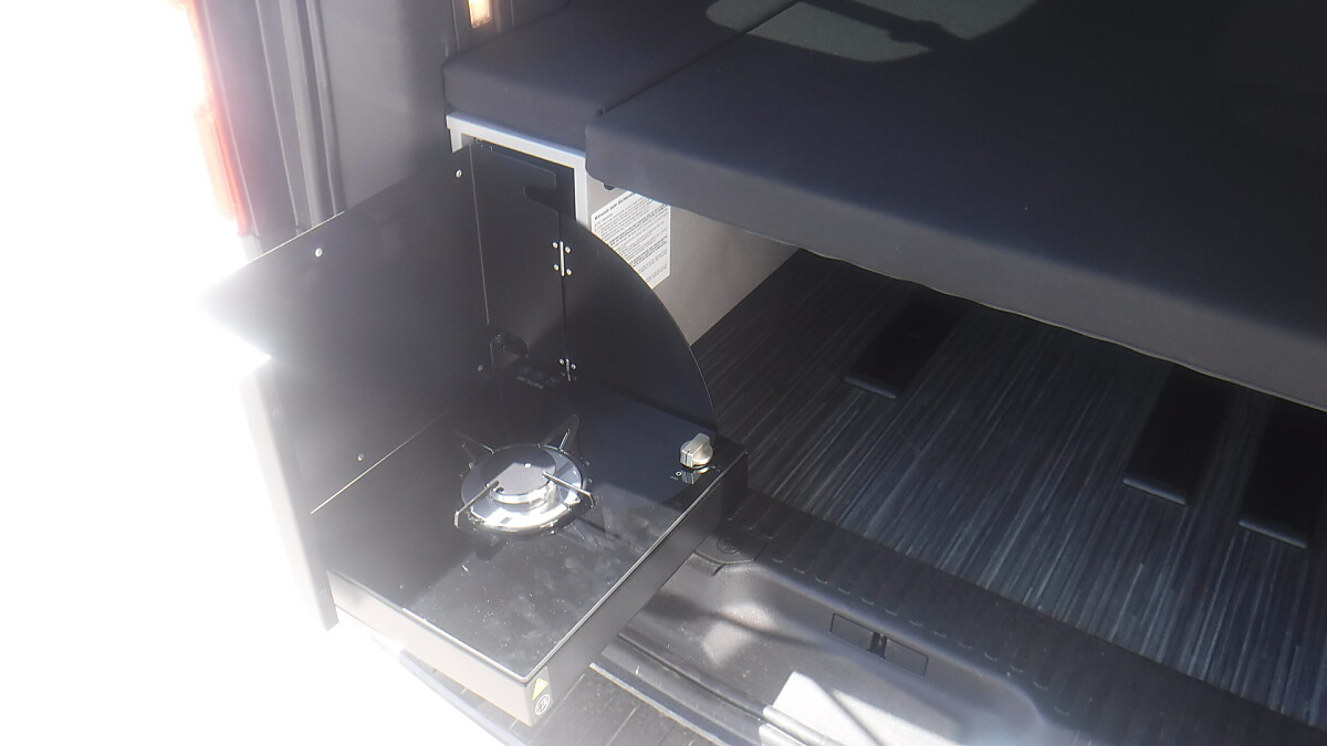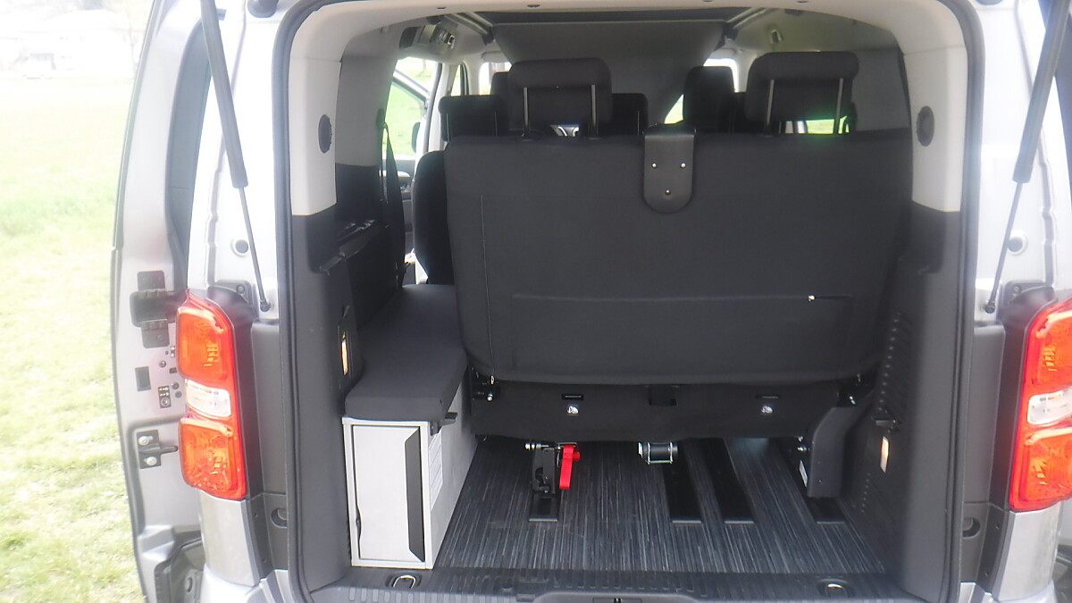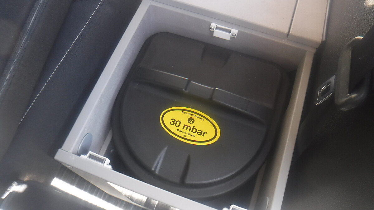 CROSSCAMP mit Ausstelldach, Markise, Drehsitze vorne, Kühlschrank und Gasherd.